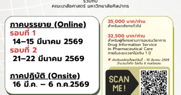 ๋5 มิ.ย. 2024หลักสูตรการฝึกอบรมระยะสั้นการบริบาลทางเภสัชกรรม ประกาศนียบัตรวิชาชีพเภสัชกรรม สาขาเภสัชกรครอบครัว