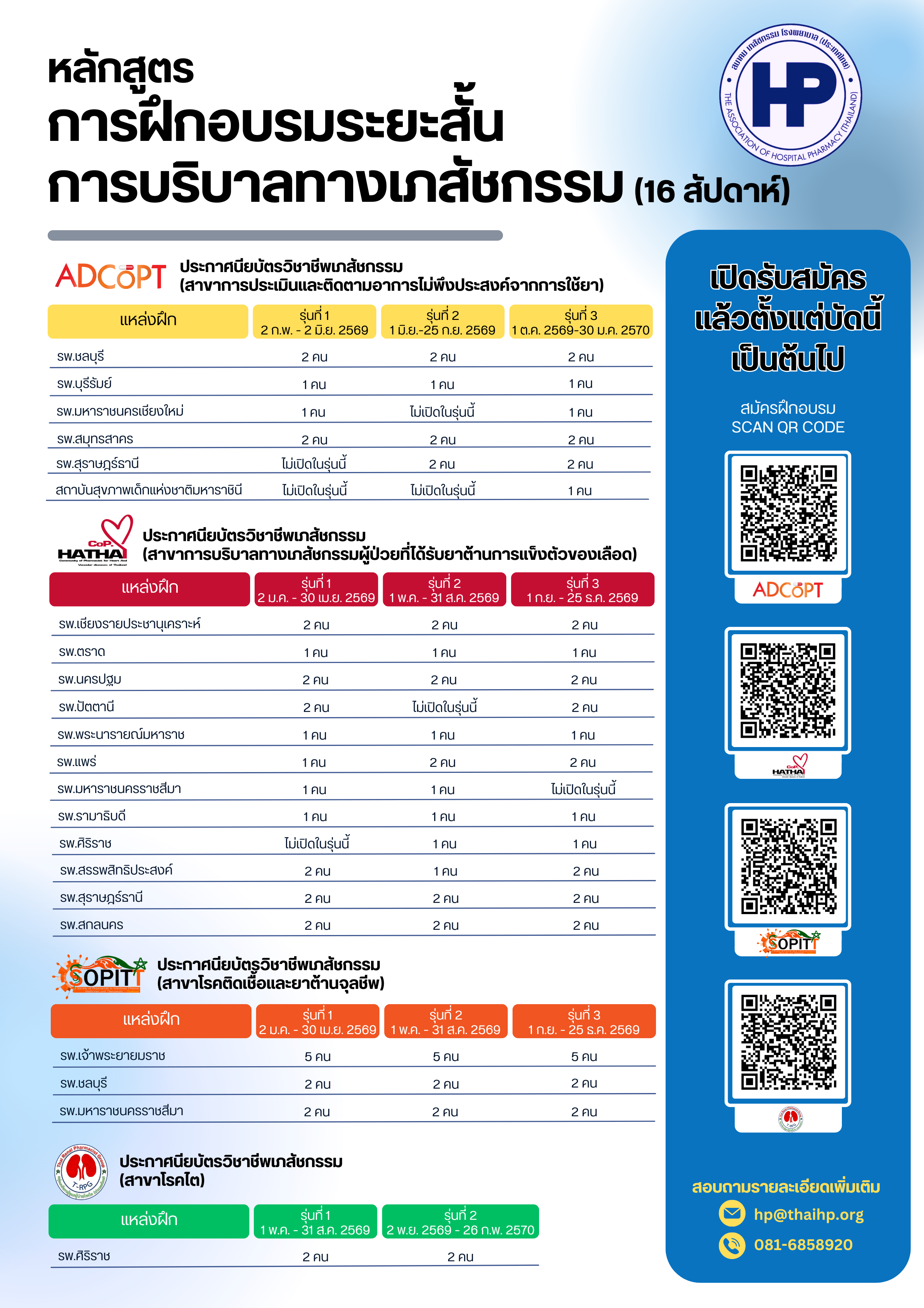 สาขาการประเมินและติดตามอาการไม่พึงประสงค์จากการใช้ยา | ติดต่อสมาคม | สมาชิก 21,000 บาท ไม่ใช่สมาชิก 25,000 บาท |